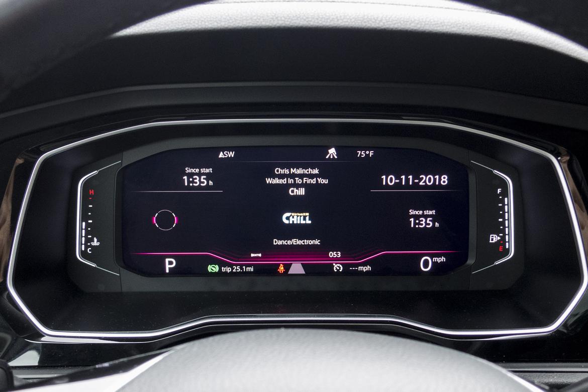 Устаревшая технология Jetta претерпела серьезные изменения: базовый 6,5-дюймовый сенсорный экран для 2019 года больше, чем самый большой экран 2018 года (6,3 дюйма), и 8-дюймовое обновление для более высоких уровней отделки салона. Интеграция смартфонов Apple CarPlay и Android Auto является стандартной для всех моделей. Jetta также имеет новейшую, удобную для пользователя мультимедийную систему VW, которая является быстрой, четкой и - на 8-дюймовой системе - имеет красивую цветную графику, которая так же хороша или лучше, чем у любого другого основного бренда. Технология модернизированного экрана также позволяет увеличивать и уменьшать масштаб, а также бесконтактное управление жестами для переключения между меню или экранами. Вы должны перейти к модели SEL, однако, чтобы получить 8-дюймовую систему. Меньшая версия на низких частотах - это нормально, она неинтересна и почти черно-белая, если вы не используете интеграцию со смартфоном. Вы также должны подскочить к SEL, чтобы получить впечатляющую настраиваемую приборную панель Digital Cockpit, представляющую собой 10,25-дюймовый дисплей, который заменяет обычные аналоговые индикаторы более низких уровней отделки салона. Как и в базовой мультимедийной системе, эти циферблаты кажутся скучными и устаревшими в сравнении. Стандартная технология на всех моделях Jettas 2019 включает в себя полезную и забавную персонализацию, которая может хранить до четырех настроек водителя на выбор, когда вы входите; два также могут быть прикреплены к брелокам для автоматической работы.