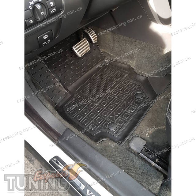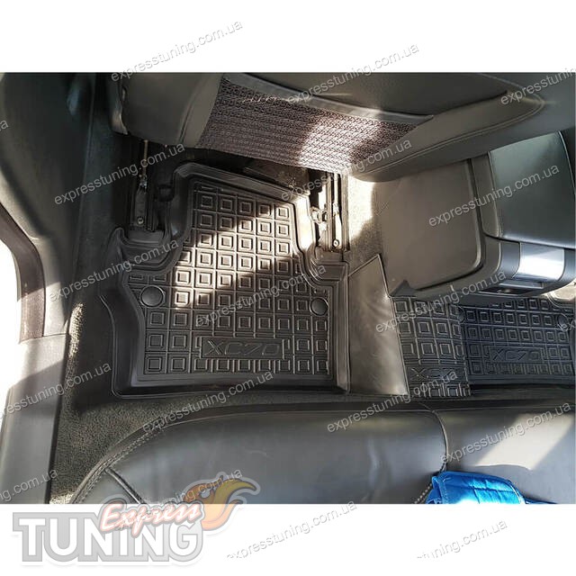 Коврики в салон Volvo XC70 2 с перемычкой оригинальные для авто с 2020- года выпуска. Полный комплект составляет 5 единиц. Идеально повторяют геометрию кузова салона. Так же имеют высокий борт - 25мм. Изготовлены из черной литой резины, которая не имеет никакого запаха. Бренд - Avto Gumm (Украина).