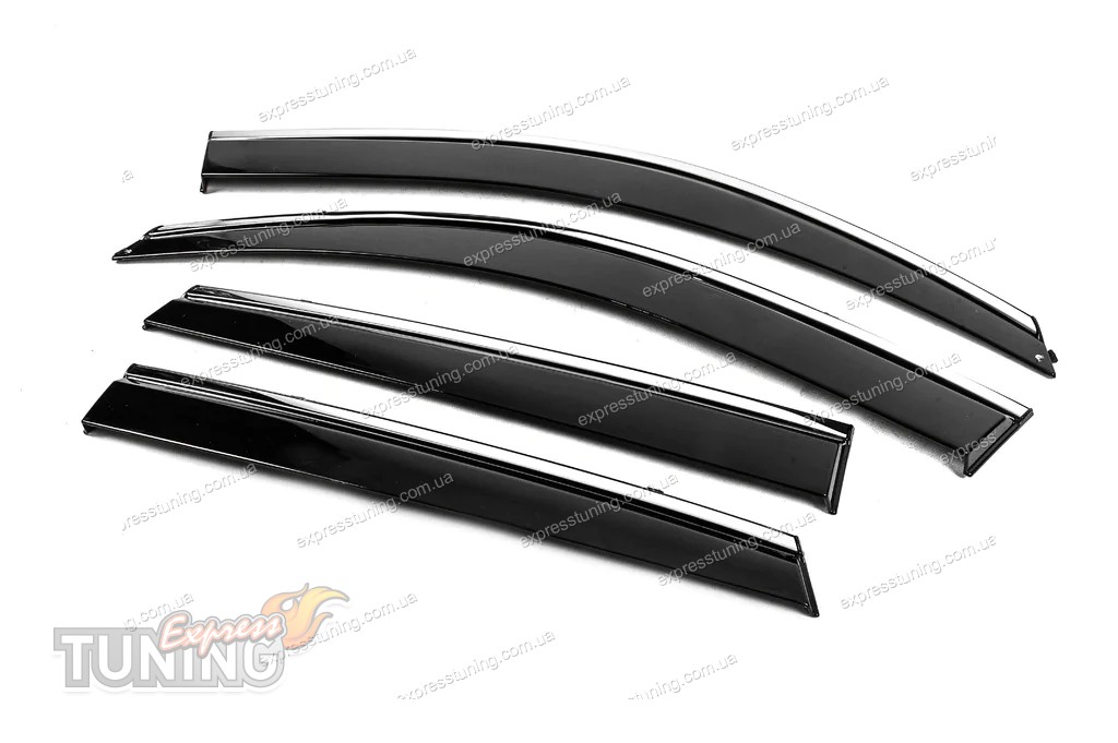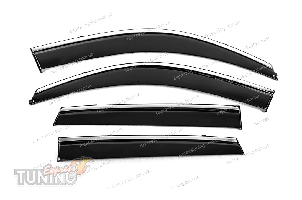 Ветровики на окна Hyundai Tucson 1 JM с хром молдингами 4шт на скотче