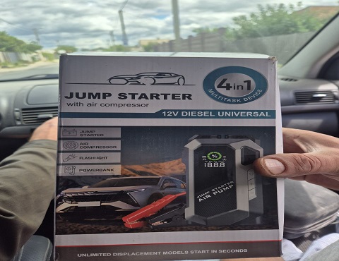 Даним зарядним пусковим пристроєм, можна також заряджати телефон і підкачувати колеса автомобіля, що дуже зручно, не потрібно кілька різних пристосувань, а тільки одна маленька коробочка і все. Провід та шланг для підкачування коліс йдуть у комплекті.
