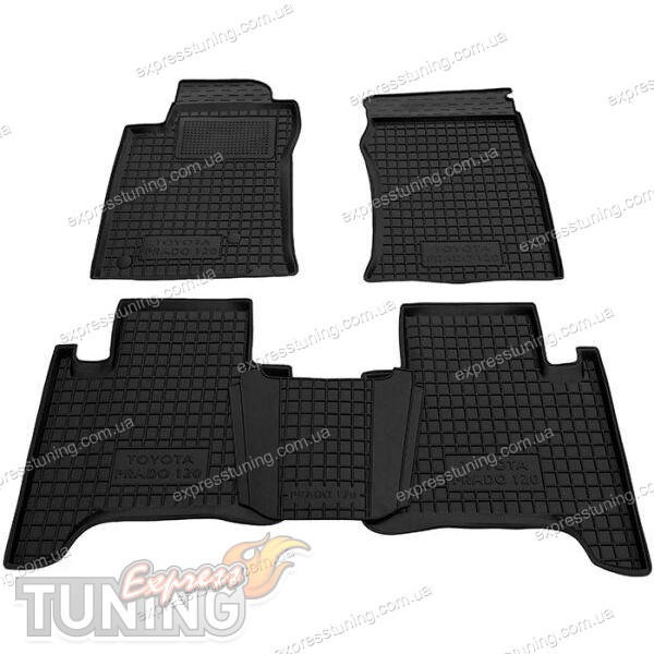 Високі килими Toyota Prado 120 з перемичкою оригінальні для авто з 2002 року. Ідеально повторюють геометрію кузова салону.